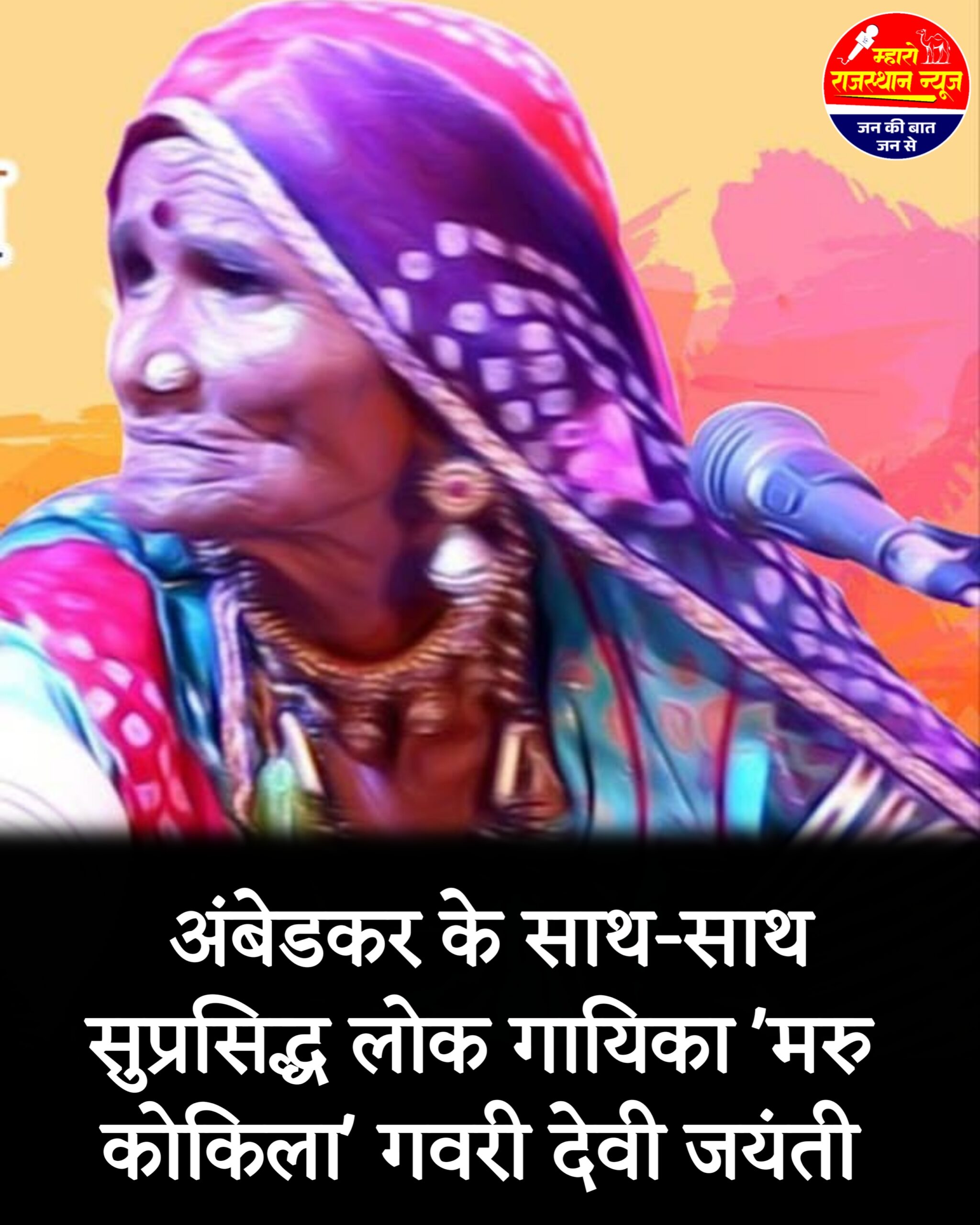 14 अप्रैल न केवल संविधान निर्माता डॉ. भीमराव अंबेडकर की जयंती के रूप में महत्वपूर्ण है, बल्कि यह दिन राजस्थान की सुप्रसिद्ध लोक गायिका गवरी देवी जी की जयंती के रूप में भी जाना जाता है। मांड गायकी को पहचान दिलाने वाली “मरु कोकिला” गवरी देवी का जन्म 14 अप्रैल 1920 को जोधपुर रियासत में हुआ था।